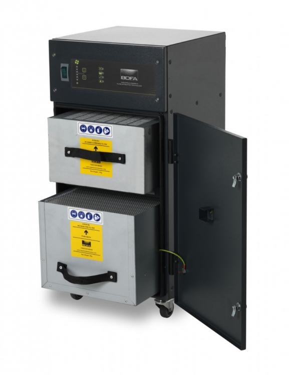 BOFA’s Advantage 350 fume extraction and filtration system effectively removes potentially harmful fumes and particulates created during the laser marking process.