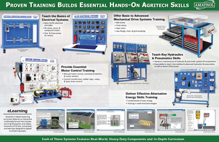 For agriculture skills training, Amatrol offers a range of technical training solutions, including eLearning curriculum and hands-on, industrial-quality training systems for both industry and education settings.