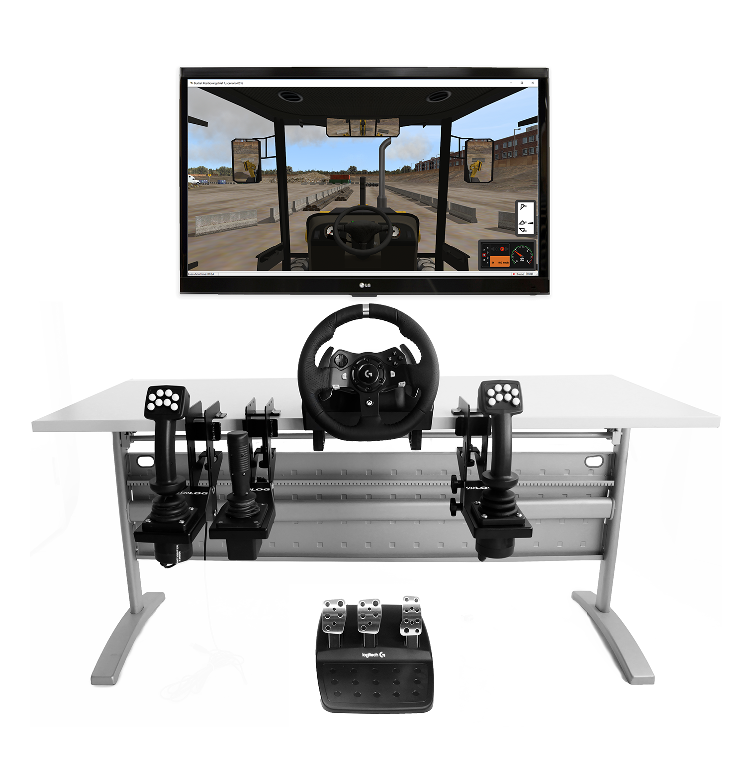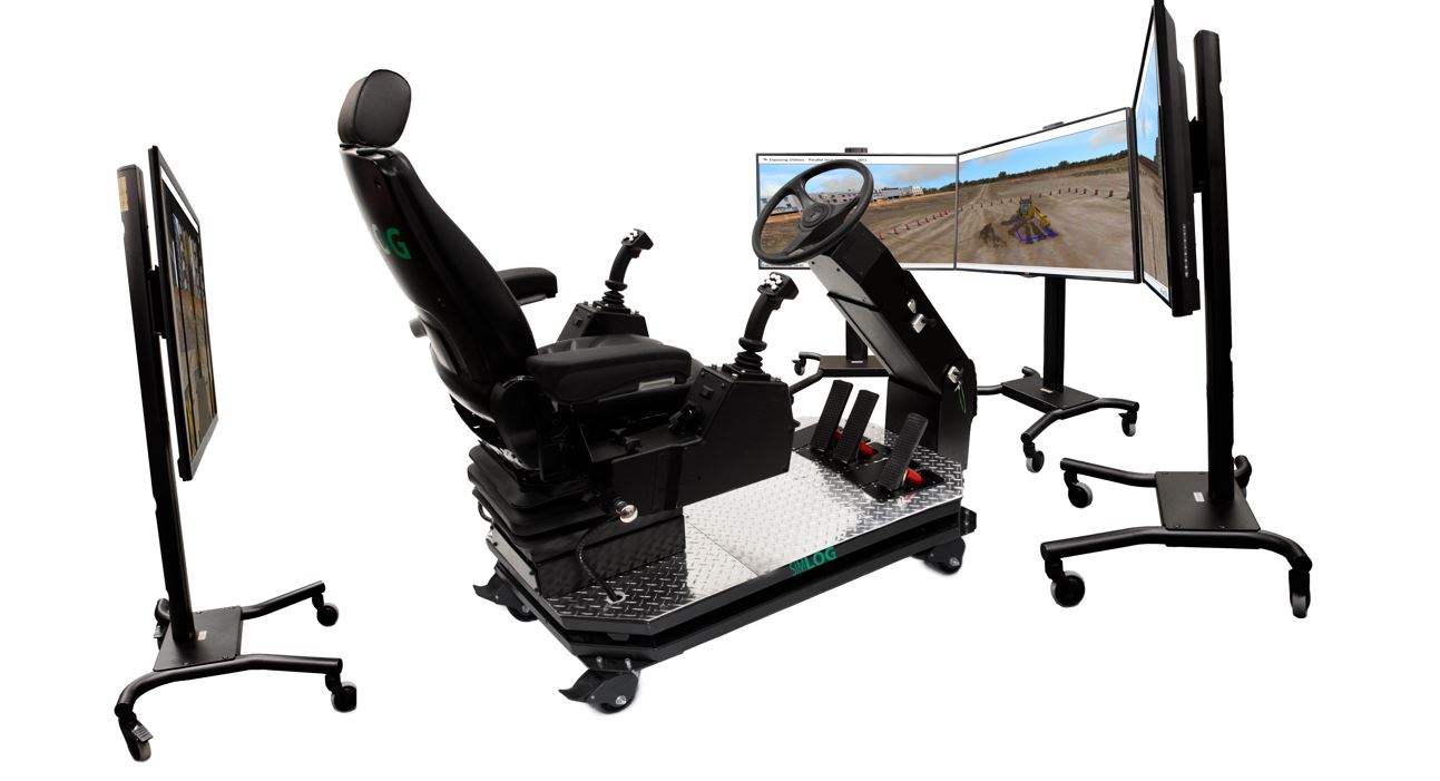 The simulator supports multiple display configurations to fit any training space—from a single-screen setup to a panoramic three-display layout. A fourth, rear-facing display can also be added to train operators on proper reverse-driving techniques—another Simlog-exclusive feature.