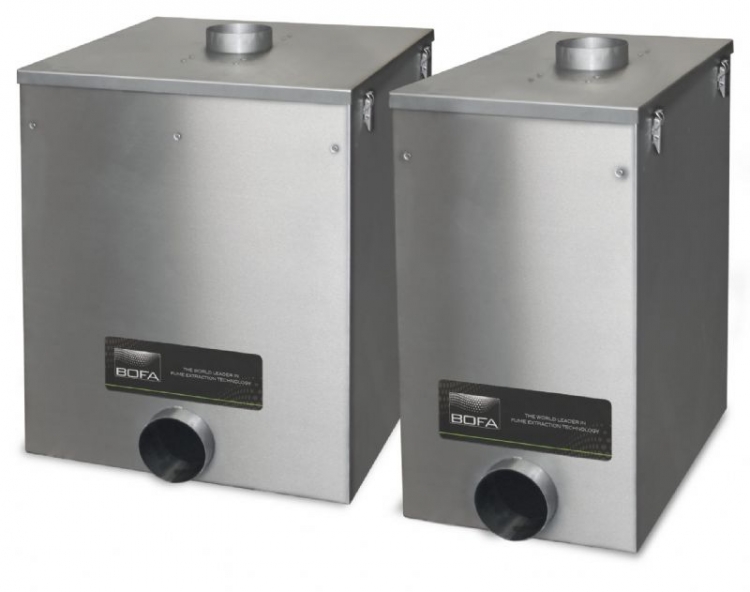 The filter unit is positioned alongside the main BOFA fume filtration system to increase the overall filter capacity and extend the life of the main filters.