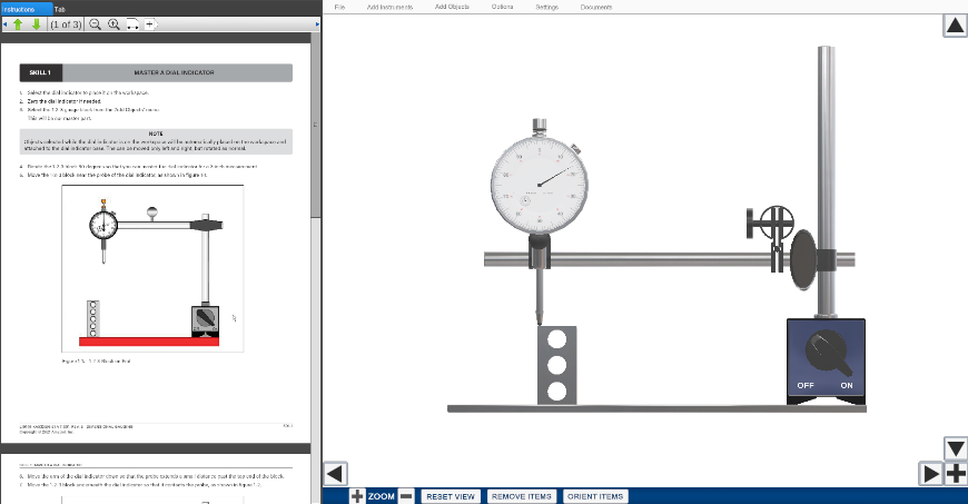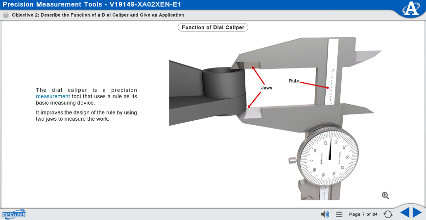 The 990-MES1 features a comprehensive measurement curriculum to teach the theoretical knowledge necessary to understand more advanced topics and applications. Within this curriculum, learners will study topics such as: stating the typical accuracy of a dial caliper measurement and explain what affects it; using an outside micrometer graduated in English units to measure the outside dimension of a part, and describing the function of a gauge fixture. This curriculum is presented in a stunning, interactive multimedia format. Each topic’s presentation includes extensive videos, 3D animations, interactive exercises, and colorful graphics that will motivate students and help them learn more effectively.
