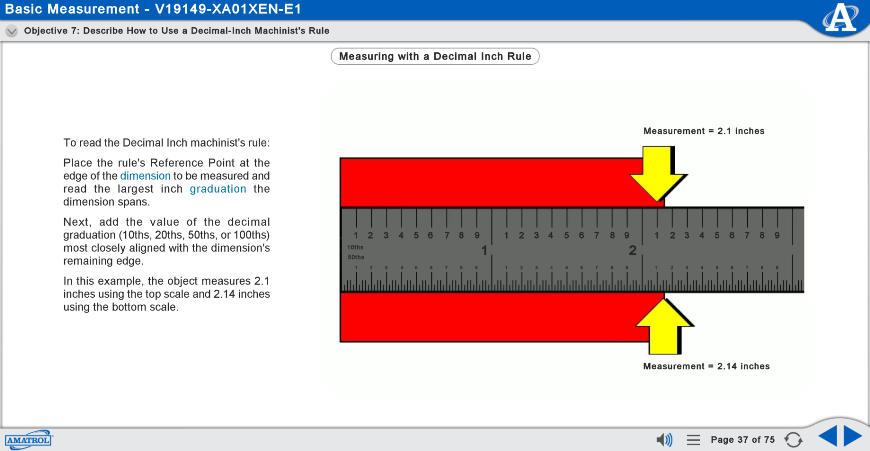 A sample copy of the Portable Measurement Tools Student Reference Guide is included with the learning system. Sourced from the multimedia curriculum, the Student Reference Guide takes the entire series’ technical content contained in the learning objectives and combines them into one perfect-bound book. If you would like to inquire about purchasing additional Student Reference Guides for your program, contact your local Amatrol Representative for more information.