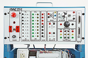 DAC Worldwide’s Basic PLC Training System – AB Micro850 (461-000) is a self-contained PLC training system that allows for self-directed instruction related to the programming and application of industrial PLCs. The basic device includes a brand name, current generation PLC, which also includes both DC inputs and outputs. The device, coupled with a comprehensive student manual, creates a complete, self-paced learning system that reflects realistic industrial and commercial applications.