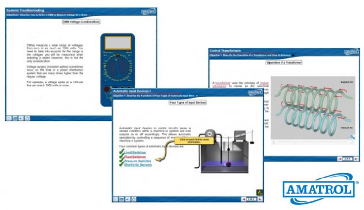 Amatrol’s extensive, thorough multimedia covers electrical basics such as electric motor control. Interactive screens paired with instructive graphics teach an array of electric motor control topics from control transformers to reversing motor control. With the optional hardware, learners can then apply this theoretical knowledge to immediate hands-on skills. For example, learners study the operation and application of a two-wire motor control circuit and then connect and operate this circuit for themselves. This combination of theory and practice ingrains concepts in a learner’s mind and makes more advanced topics easier to comprehend. (References 85-MT5)