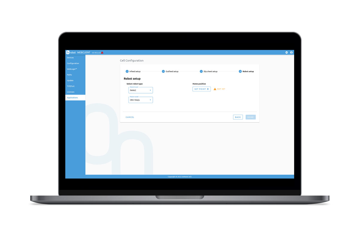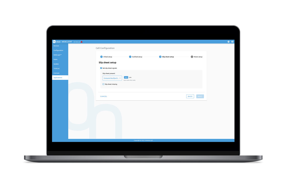 - Fully integrated with OnRobot Palletizer components with automatic detection and settings for gripper and lift