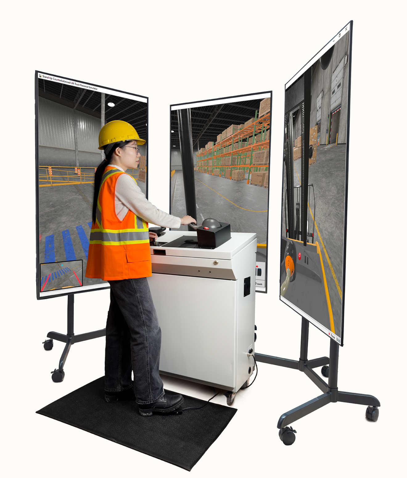 - Customizable Settings: Configure software to replicate the controls and steering behaviors of the most common stand-up counterbalanced lift trucks.