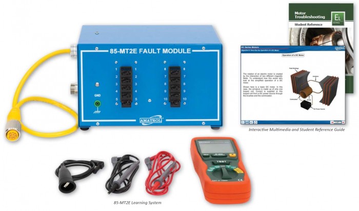 The Motor Troubleshooting Learning System (85-MT2E), used in conjunction with the Basic Electrical Machines Learning System (85-MT2), covers the testing and troubleshooting of AC and DC motors using a multimeter and a megger meter. The skills and knowledge covered by this learning system will prove invaluable for industrial maintenance technicians or anyone working in a field that uses AC and/or DC motors. This system covers major topics like AC and DC motor failures, common methods of diagnosing these failures by using a multimeter and megger meter and troubleshooting these failures.