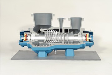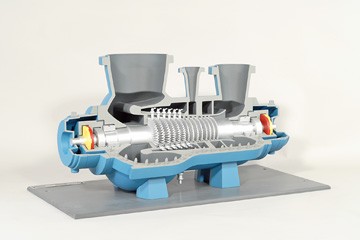 The primary housing and secondary components are sectioned allowing for view of internal components while visualizing assembly and disassembly procedures. Convenient size, detail, color-coding, and multiple cutaways combine to allow the device to be useful in courses relating to compressor operation/maintenance and process plant equipment.