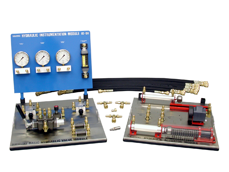 Because hydraulic power is used in everything from automotive brakes to industrial robots, the skills taught by Amatrol’s Basic Hydraulics Learning System (85-BH) opens doors to careers in fields, such as manufacturing, transportation, agricultural, and construction. Basic Hydraulics training introduces the fundamental hydraulic principles, such as pressure and flow, while simultaneously teaching industry-relevant hydraulic skills; this signature Amatrol approach to curriculum reinforces both theory and practice, which produces a well-rounded understanding of the topic.