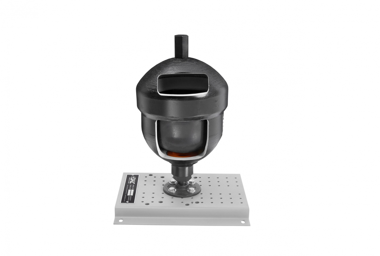 DAC Worldwide’s Bladder Accumulator Cutaway (773-195) is a professionally-crafted hydraulic accumulator cutaway that supports training in the application, design details, and operating principles of hydraulic accumulators commonly found with hydraulic systems. These hydro-pneumatic units act as energy storage devices and can perform many functions, including compensating for leakage and thermal expansion, elimination of system pulsations hydraulic shock and vibration, as well as aiding in noise reduction and improved response times.