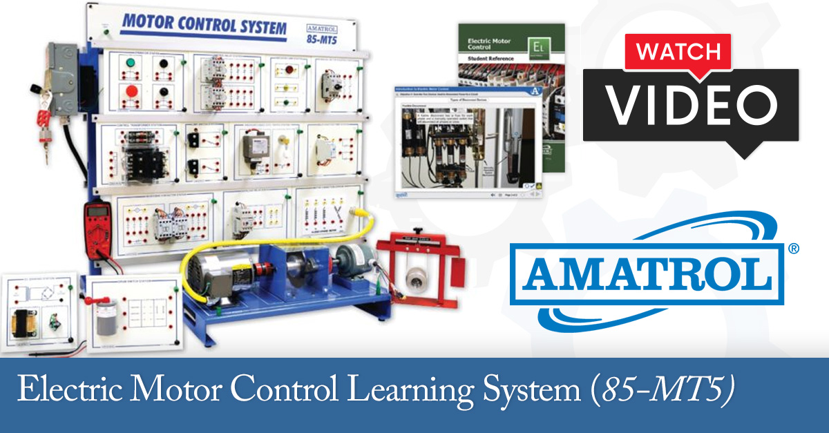 Amatrol’s Electric Motor Control Learning System (85-MT5) covers electric relay control of AC electric motors found in industrial, commercial, and residential applications. Learners study industry-relevant skills including how to operate, install, design, and troubleshoot AC electric motor control circuits for various applications.