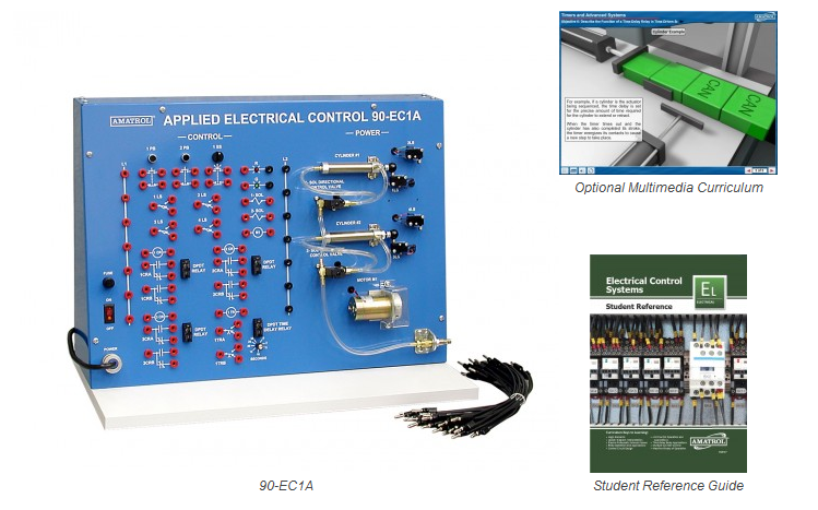 The Applied Electrical Control Learning System (90-EC1-A) teaches learners how to interpret, design, and operate relay control circuits using ladder diagrams. Electrical control is vital in the operation of electric and fluid power actuators and also forms the fundamental building block of automation systems like programmable logic controllers (PLCs), which are programmed using the electrical control schematic method, the ladder diagram.