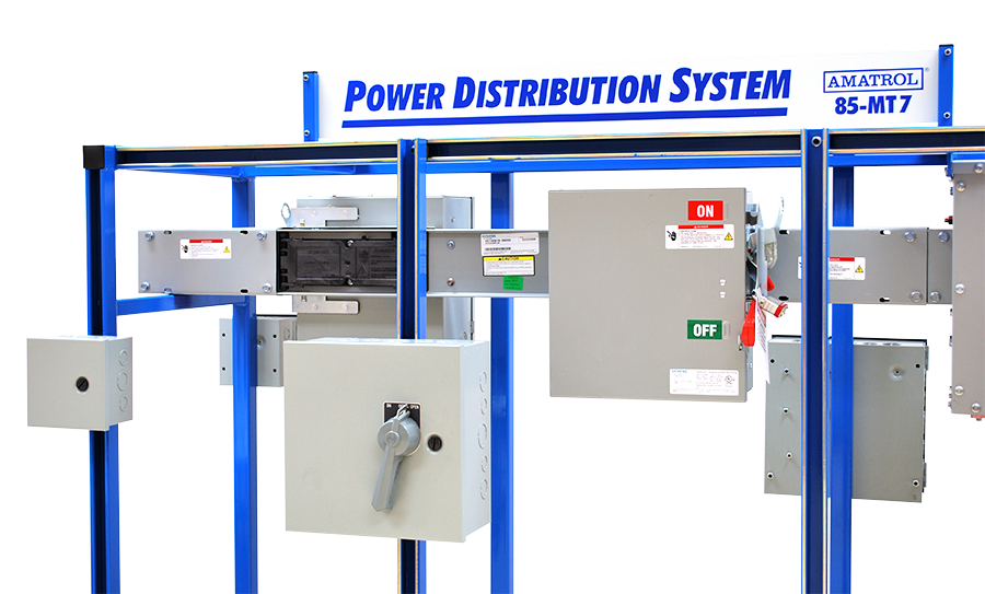 Amatrol’s Electrical Power Distribution Learning System (85-MT7B) teaches a broad range of electrical advanced manufacturing skills, such as installing, maintaining, and troubleshooting modern power distribution systems that require skills ranging from setting up basic raceways to selecting appropriate over-current protection for sensitive equipment.