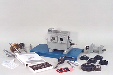 The Gear Maintenance Trainer features a variety of industrial-quality components, such as welded aluminum gearbox; custom bearing housings; flanged bearing units; spur gears; helical gears; worm gears; bevel (miter) gears; tapered roller bearings; radial ball bearings; shafting with keyways and keys; handle for illustrating thrust and establishing wear patterns; steel bracket for mounting a dial indicator; and steel baseplate.
