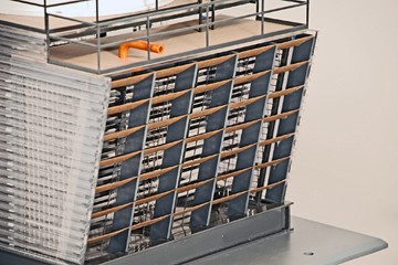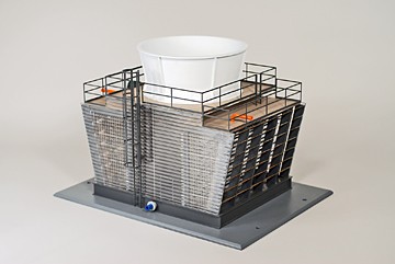 Based on common cooling tower designs similar to those manufactured by Baltimore Aircoil Company, Marley, and others, the product is a complete "to-scale" replication of common cooling tower in use today. Based on a basic opencircuit, induced draft design, the model includes detailing of primary internal components, visible through a transparent acrylic wall and side louvers.