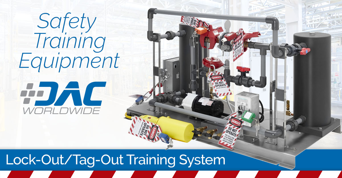 DAC Worldwide’s Lock-Out/Tag-Out Training System (811-000) features a realistic, simulated working process environment that facilitates introductory training with hands-on activities related to the process of identifying and locking out sources of dangerous potential energy in an industrial setting.