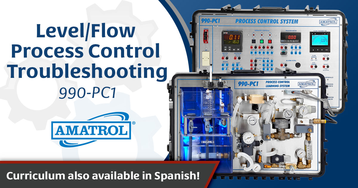 Amatrol’s Portable Process Control Troubleshooting Learning System – Level & Flow (990-PC1F) provides a skill-rich, portable troubleshooting training system for two of the most common types of process control systems, flow and liquid level. The system features eLearning curriculum and hands-on training for subjects like process control equipment safety, loop controllers, level measurement and control, control loop performance, and more.