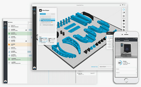 GrabCAD Print software simplifies the entire 3D printing process with an intuitive CAD-like application anyone on your team can use. Features like detailed reporting and remote monitoring help you easily manage your print jobs from outside the office. Combined with the ability to share projects between users seamlessly, it all adds up to a more streamlined, efficient workflow.