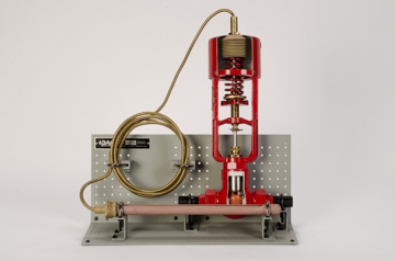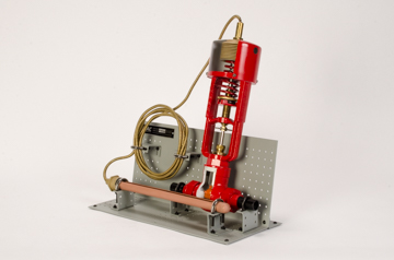 DAC Worldwide's Temperature Regulator Cutaway (295-701) is a sectioned temperature regulator allowing for convenient classroom or lab training in the design, operation, construction, and maintenance of this common control device used in oil and gas production. Sometimes referred to as a temperature regulating valve, these self-operating temperature regulators are commonly used in oilfield heater-treaters, separators, pre-heaters, and other types of heating equipment. A variety of carefully planned cut away areas combine to showcase the internal configuration of the device. The tank thermowell is also cut away allowing for view of the primary sensing bulb.